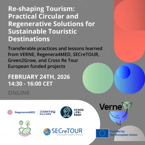 As part of its networking activity, the SECreTOUR project participates in the webinar organised by the VERNE project, in collaboration with Cross Re Tour, Green2Grow and Regenera4MED. The webinar will take place online on 24/2/2026. The joint event brings together … Continue reading →